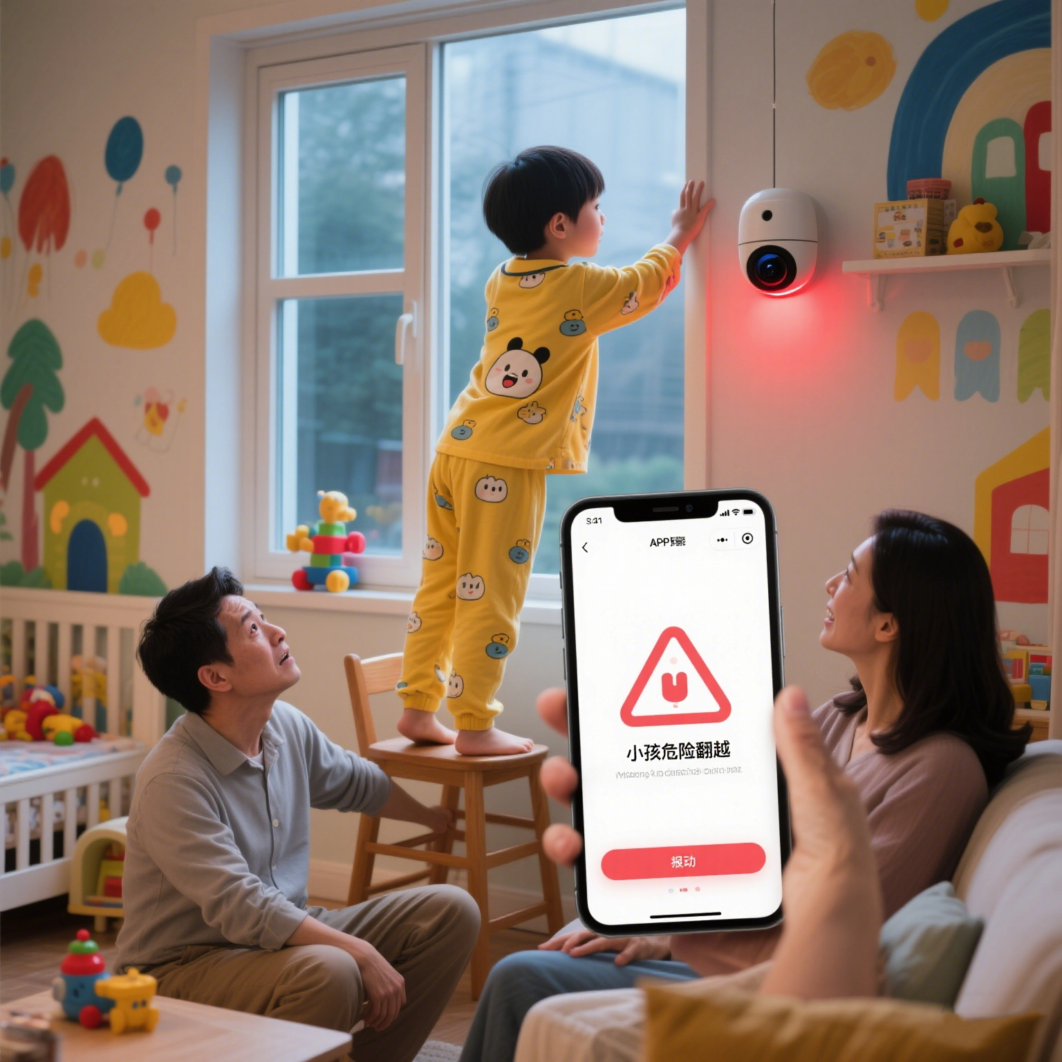 嚴密監測家中危險區域當孩子試圖翻越陽臺、樓梯護欄等危險物時,系統迅速報警,阻止危險行為,為孩子築起安全防線。
