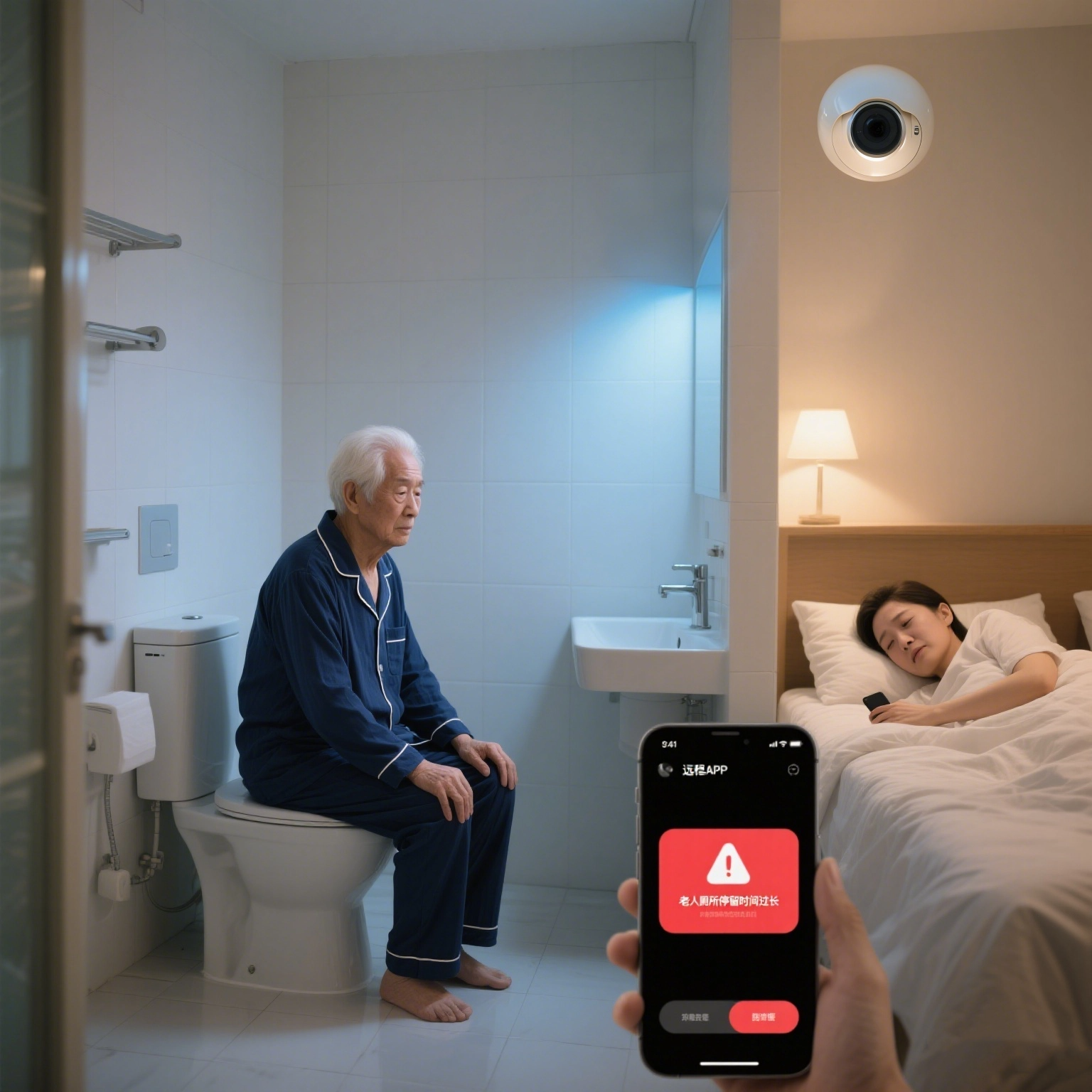 自動記錄老人在廁所的停留時間,若超過正常範圍系統智能提醒,讓您及時關注老人狀沉,防範意外發生